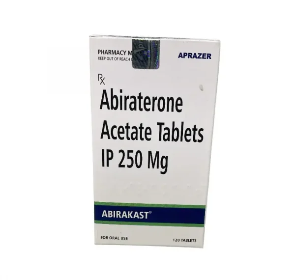 Abirakast (Acetato de Abiraterona 250 mg) es un medicamento oral utilizado en el tratamiento del cáncer de próstata metastásico. Actúa reduciendo la producción de andrógenos (hormonas masculinas) que alimentan el crecimiento del cáncer, ayudando a retrasar la progresión de la enfermedad.